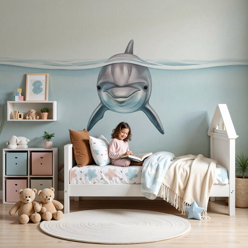 KidsWallMergulhe no mundo aquático com este papel de parede para crianças representando um golfinho que se eleva graciosamente acima das águas. Rodeado por...