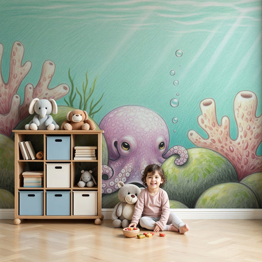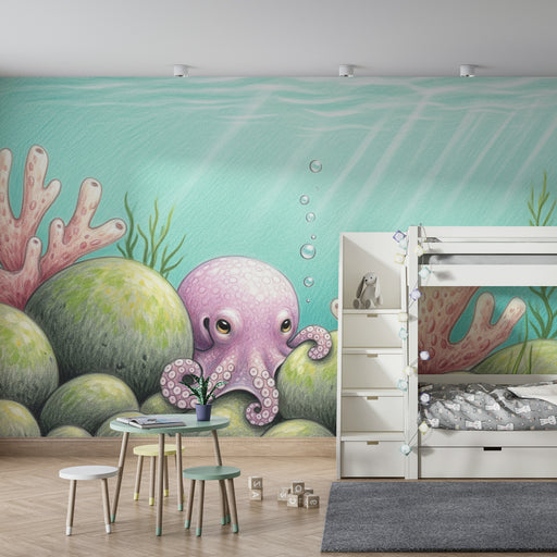 KidsWallMergulhe no fascinante mundo dos oceanos com este papel de parede para quarto de criança que apresenta um adorável polvo brincalhão. Escondido entr...