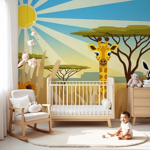 KidsWallMergulhe na aventura com este papel de parede para crianças apresentando animais icônicos da savana. Um filhote de leão curioso, uma girafa elegant...