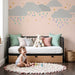 Papel de parede quarto bebê | Nuvens e gotas de chuva coloridas