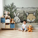 As ilustrações delicadas e as cores suaves criam uma atmosfera acolhedora e convidativa no quarto. Cada detalhe, desde as expressões alegres dos animais até às texturas naturais da madeira e das plantas, contribui para um visual tranquilo e lúdico.