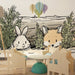 Mergulhe num mundo de suavidade e aventura com este papel de parede para crianças representando um adorável coelho e um curioso raposinho escondidos atrás de folhagens. Esta decoração encantadora convida à exploração e à imaginação, perfeita para estimular a criatividade do seu filho.