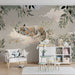 Papel de parede quarto bebê | Tigre adormecido numa nuvem rodeado por folhagem delicada