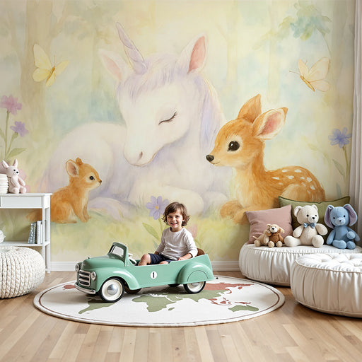 Mostrar todos os detalhesPapel de parede encantador | Unicórnio e seus amigos da floresta
