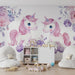 Adicione um toque de magia e suavidade ao quarto do seu filho com o nosso papel de parede unicórnio. Com unicórnios de olhos brilhantes e crina rosa, rodeados por delicadas flores pastel, este design é perfeito para criar um ambiente sonhador e encantado.