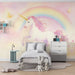 Perfeito para estimular a imaginação e criar um ambiente alegre e colorido, este papel de parede arco-íris e unicórnio é uma escolha ideal para qualquer decoração de interiores que pretenda cativar pequenos e graúdos.