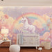 Traga um toque de magia e sonho para o seu interior com o nosso papel de parede unicórnio. Este design encantador apresenta um majestoso unicórnio a evoluir num céu pastel fluído, rodeado por um arco-íris e delicadas flores. As cores suaves e calmantes criam uma atmosfera mágica perfeita para decorar um quarto de criança ou um espaço de relaxamento.