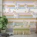 Renda-se à magia com o nosso papel de parede de unicórnio com designs encantadores. Perfeito para o quarto das crianças, apresenta unicórnios com crinas e caudas pastel em um fundo de listras douradas cintilantes e tons suaves. Crie um espaço de sonho e mágico com este estampado adorável e chique.