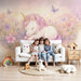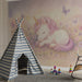 Este adorável papel de parede unicórnio apresenta um doce unicórnio adormecido no meio de flores pastel e borboletas. Perfeito para um quarto de criança, este design encantador convida à fantasia e ao imaginário.