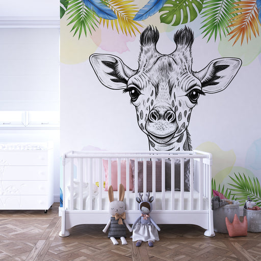 KidsWallAdicione um toque lúdico e tropical ao quarto do seu filho com este papel de parede para crianças representando uma adorável girafa escondida entre...