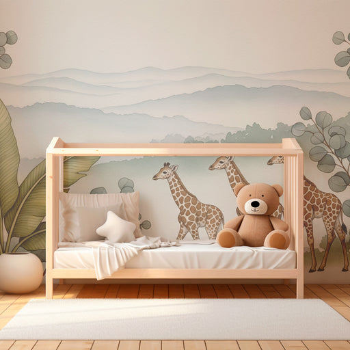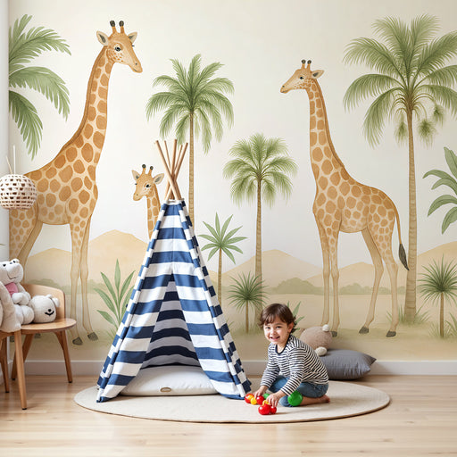 KidsWallTransforme o quarto do seu filho num oásis de tranquilidade com este papel de parede para crianças ilustrando majestosas girafas passeando numa sav...