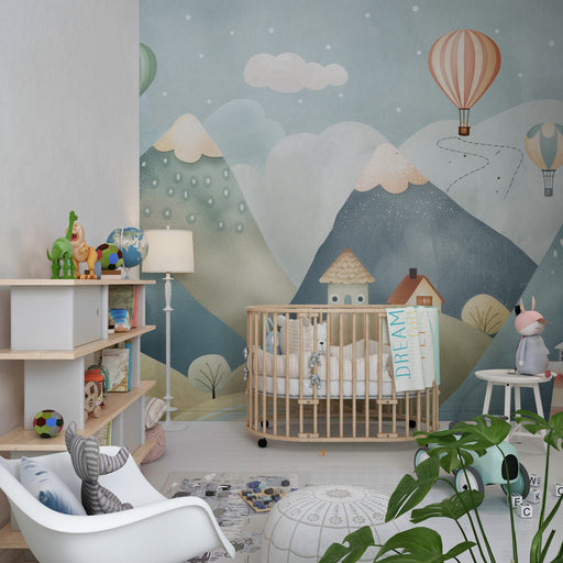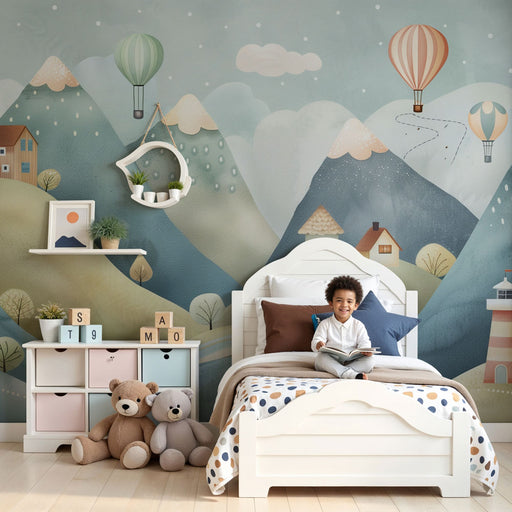 KidsWallOfereça ao seu filho um cenário onde o horizonte se estende ao infinito, onde os balões elegantes se elevam suavemente acima de montanhas enevoadas...