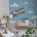 Este papel de parede aeronáutico é perfeito para os entusiastas da aviação e viagens aéreas. Com suas ilustrações de aviões vintage e balões de ar quente coloridos flutuando entre as nuvens, ele traz uma atmosfera de liberdade e aventura para qualquer sala.