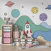 Este papel de parede para criança é perfeito para acompanhar móveis de madeira clara e acessórios lúdicos. Crie um espaço onde cada noite se torna um convite para explorar os confins do universo com este magnífico design da Kids Wall.