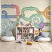 Transforme o quarto do seu filho num verdadeiro parque infantil com este papel de parede para crianças inspirado nos circuitos de bolas. As linhas fluidas e as cores vivas criam um universo lúdico onde cada movimento se torna uma nova aventura. As espirais e curvas lembram os jogos de infância, estimulando a imaginação e a criatividade.