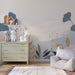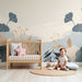 Redecore o quarto do seu filho com este papel de parede para crianças inspirado na beleza tranquila da natureza. Esta bela ilustração apresenta flores estilizadas e folhas em tons suaves de bege e azul, trazendo um toque de serenidade e elegância ao espaço.