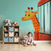 O fundo calmante em tons de azul e laranja evoca uma atmosfera de serenidade, enquanto a girafa traz uma nota de aventura e maravilha. É uma decoração perfeita para inspirar a criatividade e fascinação do seu filho pelos animais e pela natureza.