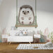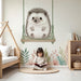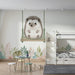 Crie um espaço pacífico e encantador no quarto do seu bebé com este papel de parede para bebé que apresenta um ouriço adorável num baloiço. Rodeado por delicadas flores e folhagens pastel, esta decoração convida à suavidade e à fantasia.