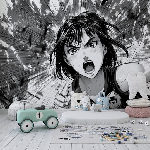 KidsWallAcest tapet manga epic capturează o scenă dinamică și captivantă în alb și negru. Cu linii energice și intense, este ideal pentru a crea o atmosfer...