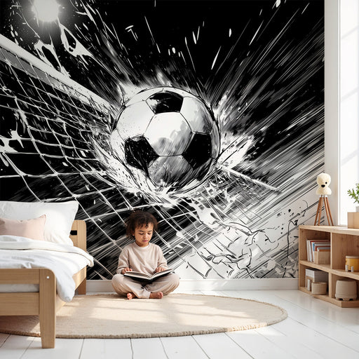 KidsWallDescoperiți tapetul nostru manga fotbal care surprinde esența unui gol spectaculos într-un stil artistic unic. Liniile dinamice și contrastul alb ș...