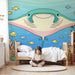 Înecați-vă în fascinantul univers al oceanului cu acest tapet pentru copii care reprezintă o raie manta veselă înconjurată de pești colorați. Acest decor marin vibrant invită la aventură și descoperirea minunilor subacvatice.