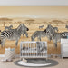 Redesignați camera copilului dvs. într-un adevărat safari cu acest tapet pentru copii care ilustrează zebre majestuoase evoluând într-o savană aurie. Zebrele, cu dungi distincte, se mișcă pașnic într-un peisaj luminat de blânda lumină a apusului, creând o atmosferă liniștită și captivantă.