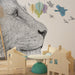 Liniile subțiri și detaliate ale leului, împreună cu ușurința păsărilor, aduc o notă artistică și modernă în cameră. Acest tapet pentru camera copilului stimulează imaginația și invită la aventură, oferind în același timp un spațiu propice visării.