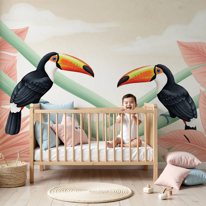 Tapet pentru camera copilului | Tucan colorat și junglă tropicală