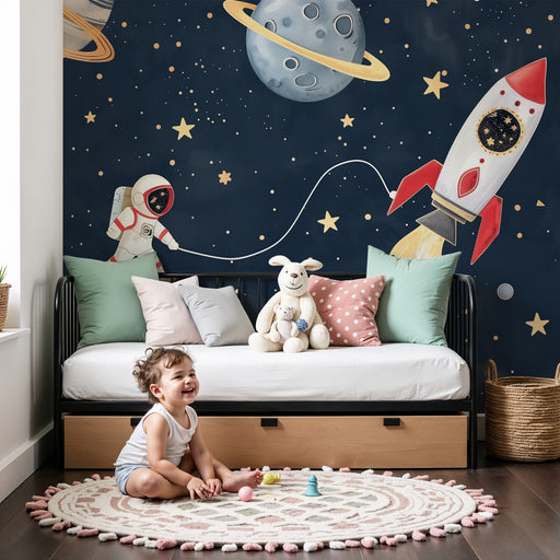 Afișați toate detaliileTapet cameră copil | Aventură spațială dulce și înstelată