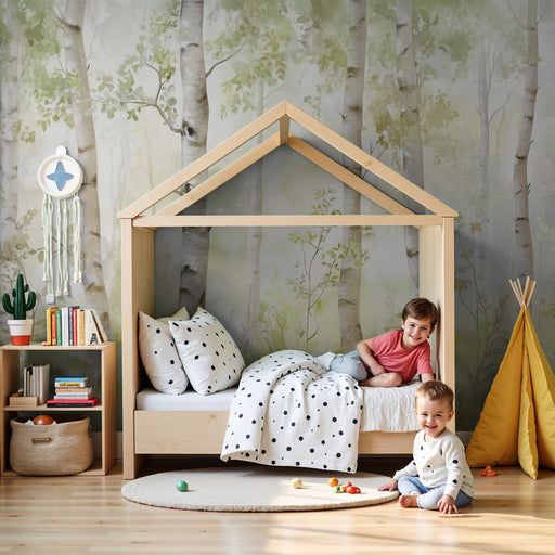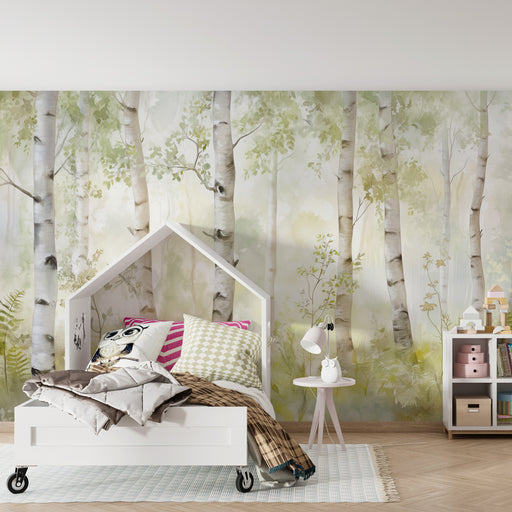 KidsWallPlonjează-te într-un univers liniștit unde natura își recapătă drepturile cu acest tapet pentru camera bebelușului. O pădure de mesteceni scăldată ...