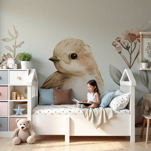 KidsWallTransformați camera copilului dumneavoastră într-un adevărat refugiu de dulceață cu acest tapet pentru copii, unde un adorabil pasăre prinde viață ...