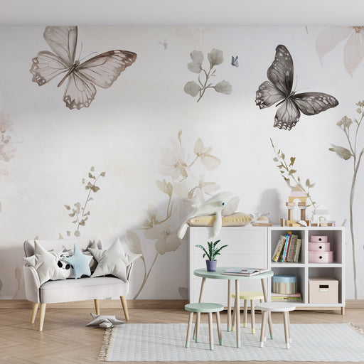 Afișați toate detaliileTapet cameră bebeluș | Fluturi și flori în acuarelă delicată