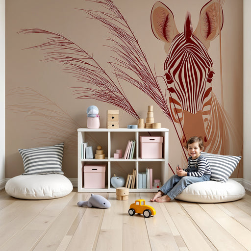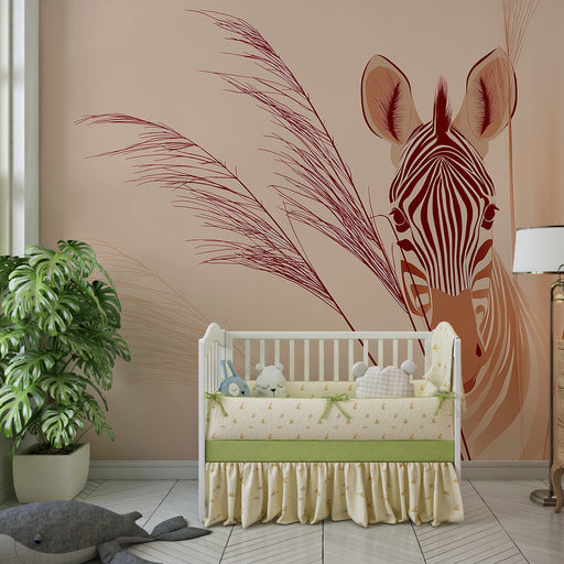 Afișați toate detaliileTapet pentru cameră de copii | Abordare delicată a unei zebre și ierburi moi