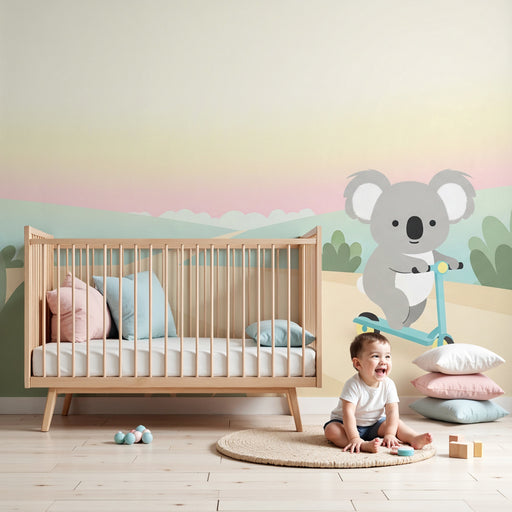 Afișați toate detaliileTapet pentru camera de copii | Koala drăguț pe trotinetă