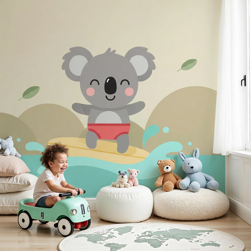 Afișați toate detaliileTapet pentru camera de copii | Koala surfer și natură liniștitoare