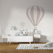 Acest decor fermecător stimulează imaginația și invită la evadare, transformând camera într-un adevărat spațiu de vis. Nuanțele ușoare și armonioase aduc o notă de delicatețe, perfectă pentru a liniști nopțile bebelușului dumneavoastră.