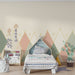 Transformați camera bebelușului într-un spațiu fermecător cu acest tapet pentru bebeluși cu modele geometrice delicate. Romburi în nuanțe pastel de roz, verde și crem se îmbină armonios, creând o atmosferă dulce și liniștitoare. Mici stele aurii adaugă o notă de magie, invitând la visare și imaginație.