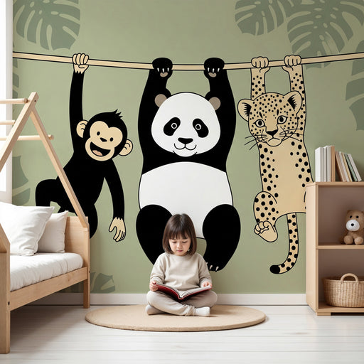 Afișați toate detaliileTapet pentru camera copilului | Panda și maimuță în jungla nocturnă