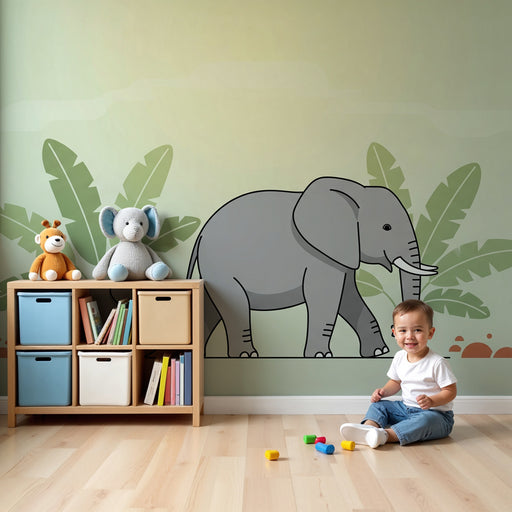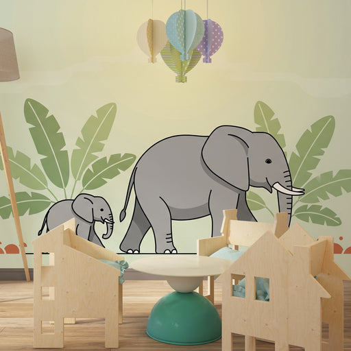 Afișați toate detaliileTapet camera copil | Elefanți adorabili și junglă liniștitoare