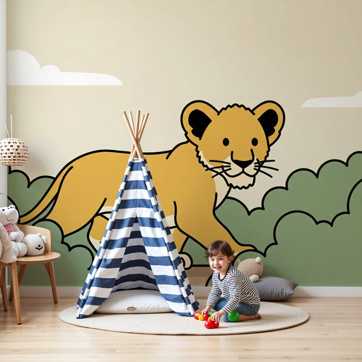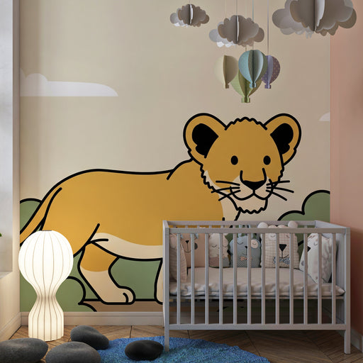 KidsWallTransformați camera copilului dvs. într-un adevărat safari cu acest tapet pentru copii care prezintă un pui de leu adorabil ieșind din savană. Cu o...