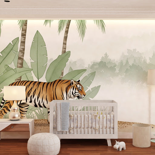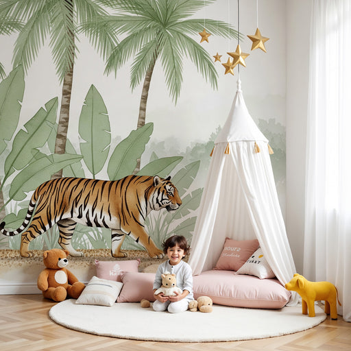 KidsWallTransformați spațiul copilului dvs. într-un adevărat sanctuar al junglei cu acest tapet pentru cameră de copil. Un tigru măreț se plimbă printre pa...