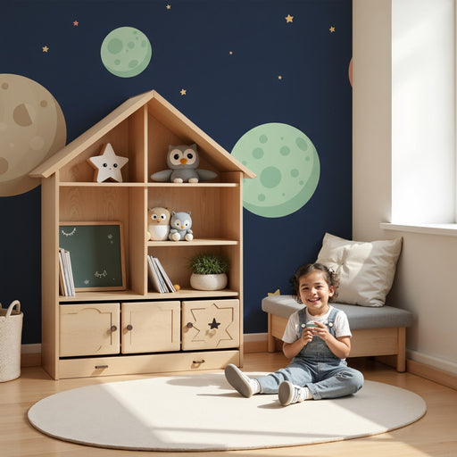 KidsWallÎmbarcați-vă într-o aventură cosmică cu tapet pentru copii cu modele de planete și stele. Acest decor spațial fermecător îi invită pe micii explora...