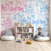 Tapet pentru cameră copii | Savană în roz și albastru cu girafe