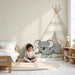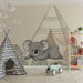 Transformați camera bebelușului dvs. într-un adevărat refugiu de liniște cu acest tapet pentru bebeluși ilustrând un koala adorabil care se joacă lângă un tipi. Acest decor fermecător invită la aventură, aducând în același timp o notă de delicatețe și liniște în spațiu.