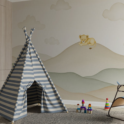 Afișați toate detaliileTapet camera copil | Pui de leu liniștit pe dealuri
