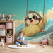 Nuanțele blânde de albastru și roz din cer, combinate cu vârfurile înzăpezite, aduc o senzație de liniște și visare. Fiecare detaliu, de la zâmbetul prietenos al leneșului la nuanțele liniștitoare ale peisajului, a fost gândit pentru a stimula imaginația. Acest decor imersiv îi invită pe micii aventurieri să exploreze lumi fantastice fără să părăsească vreodată camera lor.