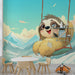 Transformați camera copilului într-un peisaj fermecător cu acest tapet pentru copii reprezentând un leneș adorabil distrându-se pe o leagăn. Suspendat în aer, el se leagănă vesel deasupra munților măreți acoperiți de zăpadă, creând o atmosferă jucausă și vie.