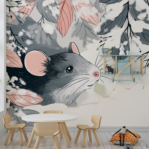 KidsWallTransformați camera bebelușului dvs. într-un cuib cald cu acest tapet pentru bebeluși care ilustrează un șoricel adorabil ieșind dintr-un peisaj ie...
