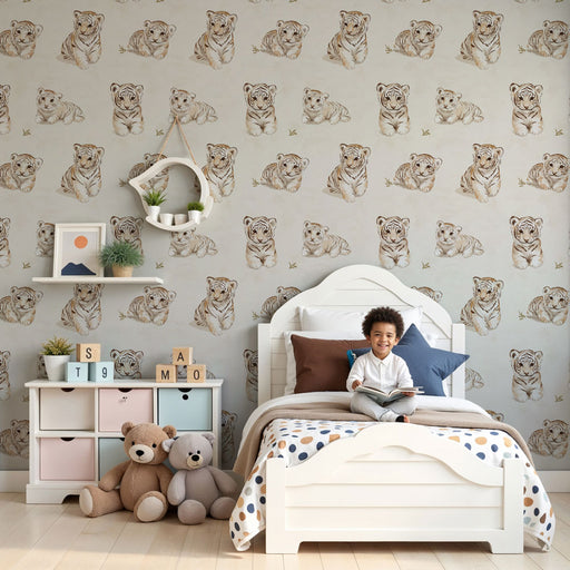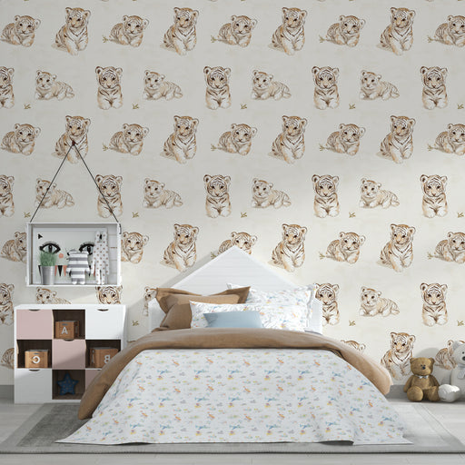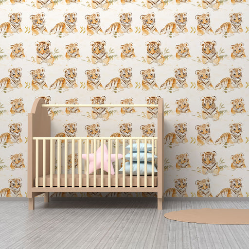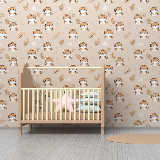 Afișați toate detaliileTapet pentru cameră de copii cu modele | Tigri adorabili în nuanțe blânde