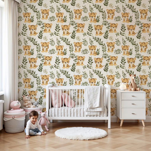 KidsWallTransformați camera micuțului dvs. cu acest tapet pentru cameră de copii, decorat cu tigri fermecători și frunze delicate. Acest model ludic și col...